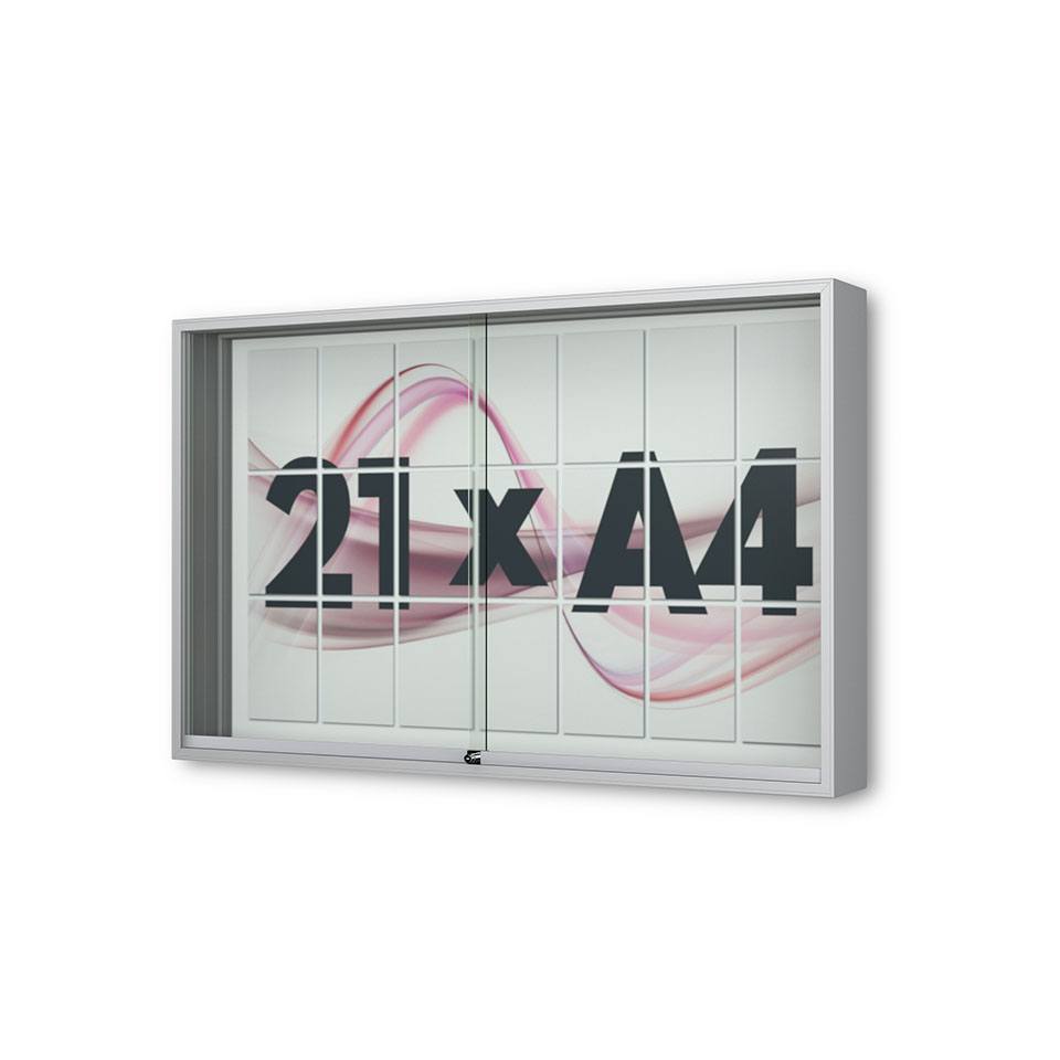 21 x DIN A4 Schaukasten Fortis mit Schiebetüren - 210 mm Bautiefe