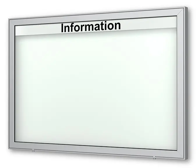 Schaukasten Plenum - eckig - "der Klassiker" - Wandschaukasten mit optionaler LED-Beleuchtung 100mm - Gehäusetiefewetterfester, robuster SchaukastenUmfangreiches Zubehör wie Beleuchtung und RAL-FarbenGröße B/H12 × DIN A4 • 980 × 1130 mm Oberfläche - Eloxierung in matt-silber (E6/EV1)Freistehender Schaukasten - einseitig nutzbarBeleuchtung – optionale LED-LangfeldleuchteÖffnung - Nach oben öffnender Klappflügel, unterstützt durch Gasdruckfedern mit automatischer Arretierung in geöffneter StellungVerglasung - Einscheiben-Sicherheitsglas / ESG Textblende - unbeschriftete, weiße Acryl-TextblendeSchließung - Sicherheitsschlösser mit je 2 SchlüsselnRückwand - weiße, magnethaftende Rückwand mit 10 Magneten