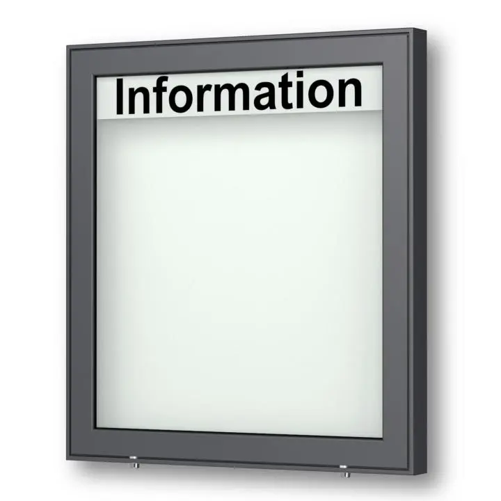 Schaukasten Planus - Wandmontage - optional mit LED Beleuchtung Standard-Formate sofort ab Lager lieferbar Gehäusetiefe 65mm Aufnahme von DIN A-4-Blätter B/H: 15 × DIN A4 • 1180 × 1130 mm Öffnung - Klappflügel mit Gasdruckfedern Verglasung - Einscheiben-Sicherheitsglas / ESG Oberfläche - anthrazit (DB 703) Beleuchtung - ohne Beleuchtung - optional mit LED-Langfeldleuchte Mit weißer Acryl-Blende - ohne Betextung Schließung - Sicherheitsschlösser unten mit je 2 Schlüsseln Montage - vorgerichtet für Wandmontage, inkl. Befestigungsmaterial Rückwand - innen weiß / außen silber - magnethaftende Rückwand inkl. 10 Magneten